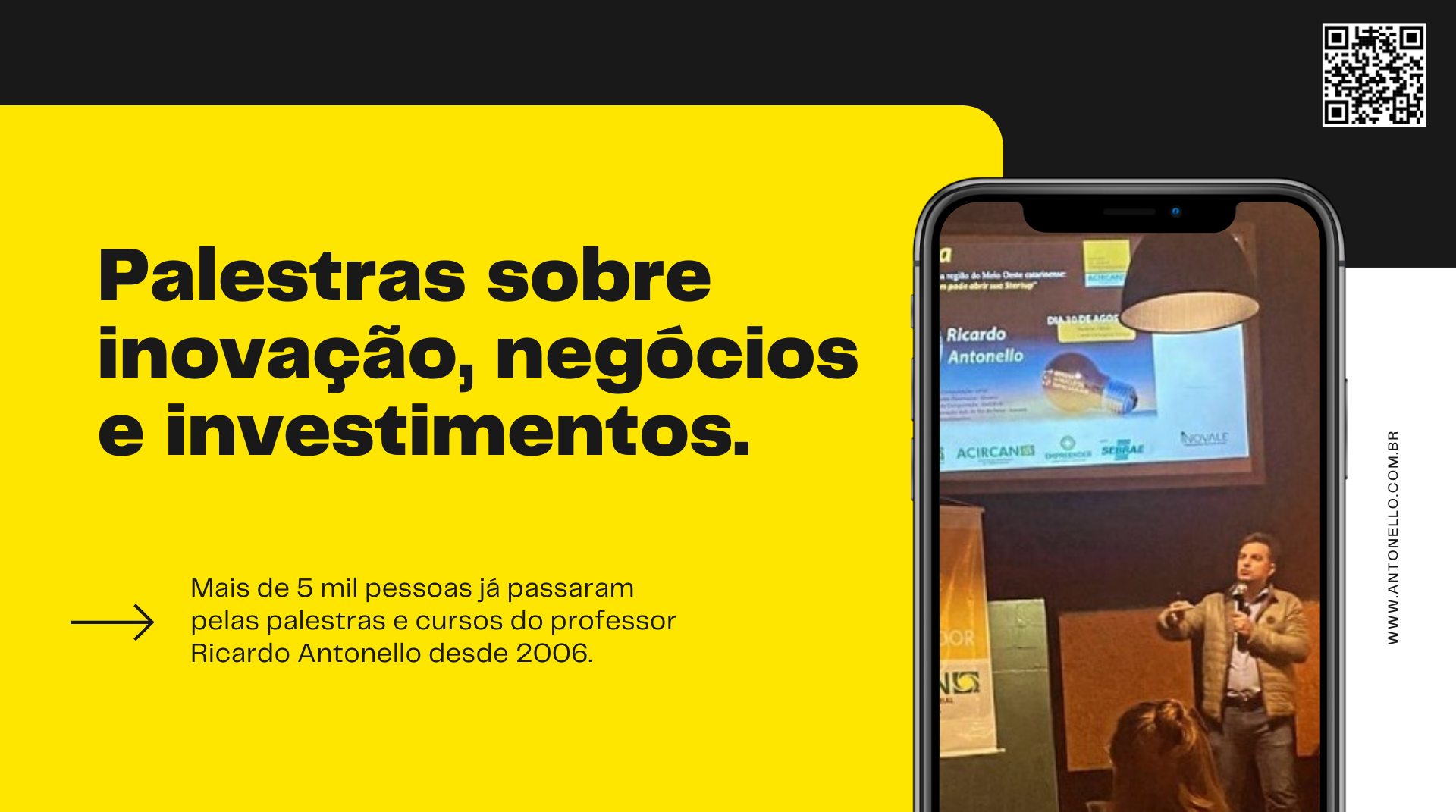Palestras sobre investimentos e inovação. Escolha uma das 6 palestras disponíveis!